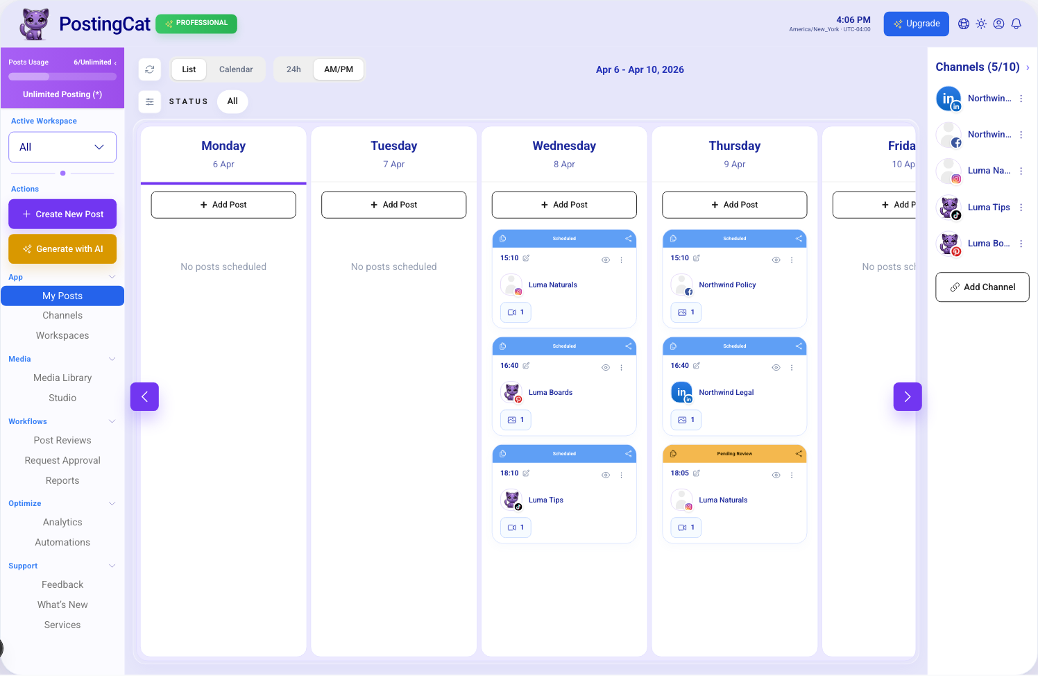 Plan client content, automate publishing, run approvals and track results from one workspace.