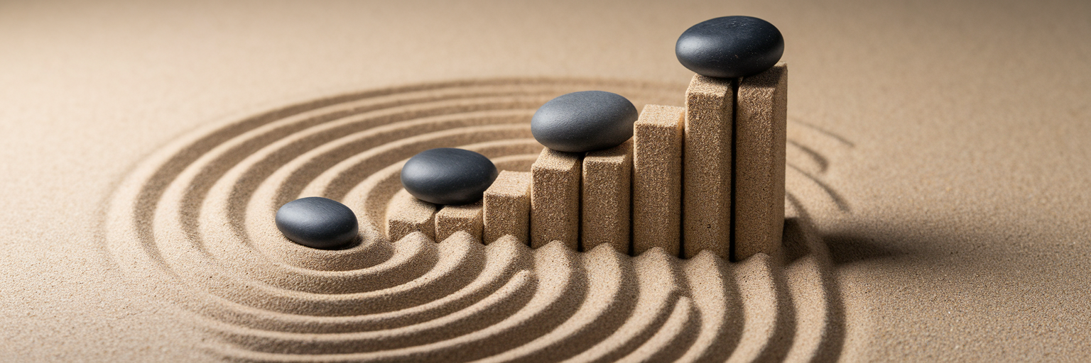 Zen garden with sand raked into growth chart
